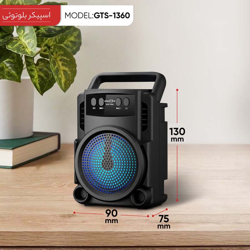 در نگاه اول به GTS-1360 3inch Bluetooth speaker، توجه شما معطوف به باند بزرگ آن و نوری که در پس زمینه اش دیده می شود، خواهد شد اما کمی بعد متوجه دستهی بسیار زیبا و کارآمد آن و دکمه هایش می شوید.